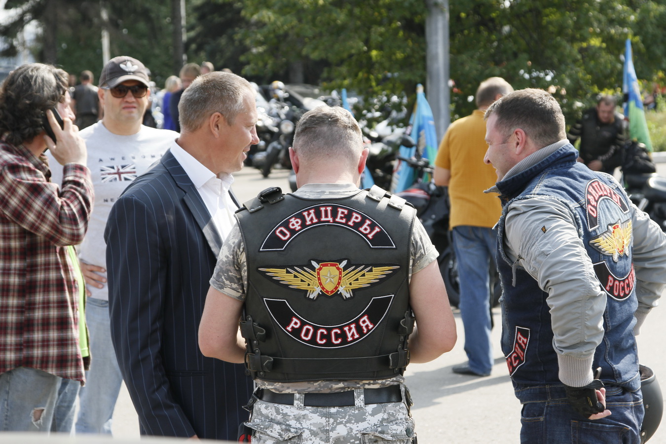 Ровно в 13:00 начался мотопарад: на площадь один за другим выезжали яркие автомобили и мотоциклы с развивающимися на ветру флагами в руках сильных, мужественных и счастливых людей, ведущих эту колонну. На звуки парада к площадке постепенно стекались зрители.